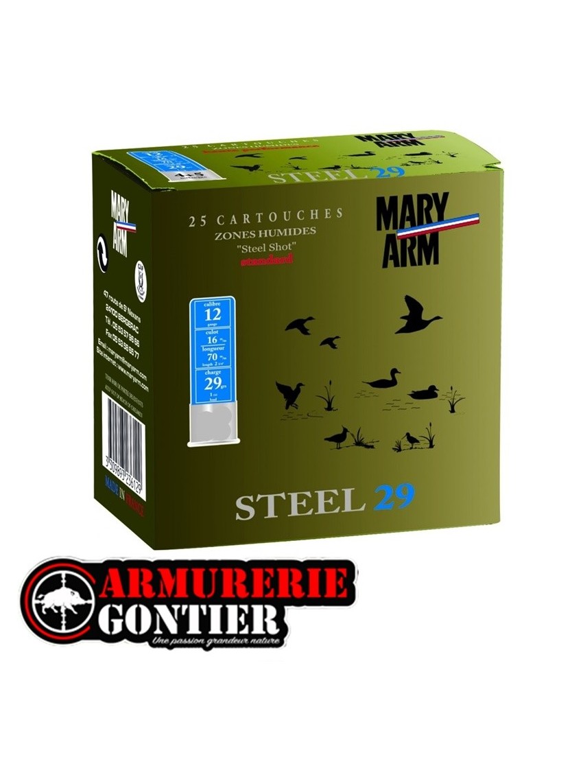 Cartouches MARY ARM STEEL 29 Calibre 12/70 29grs N° 5+6 Bourre jupe
