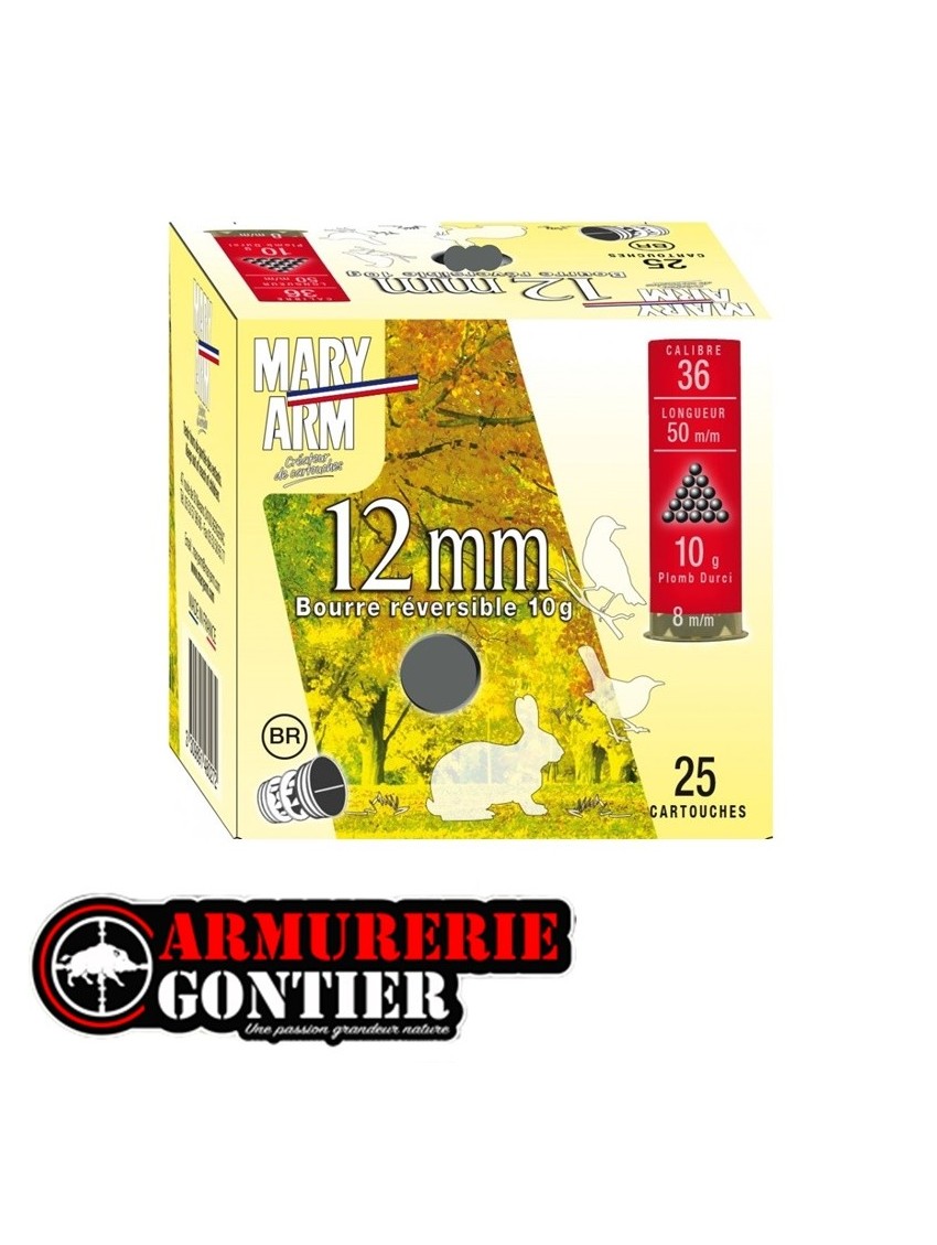 Cartouches MARY ARM 12MM Calibre 36/50 10grs N°10 bourre réversible