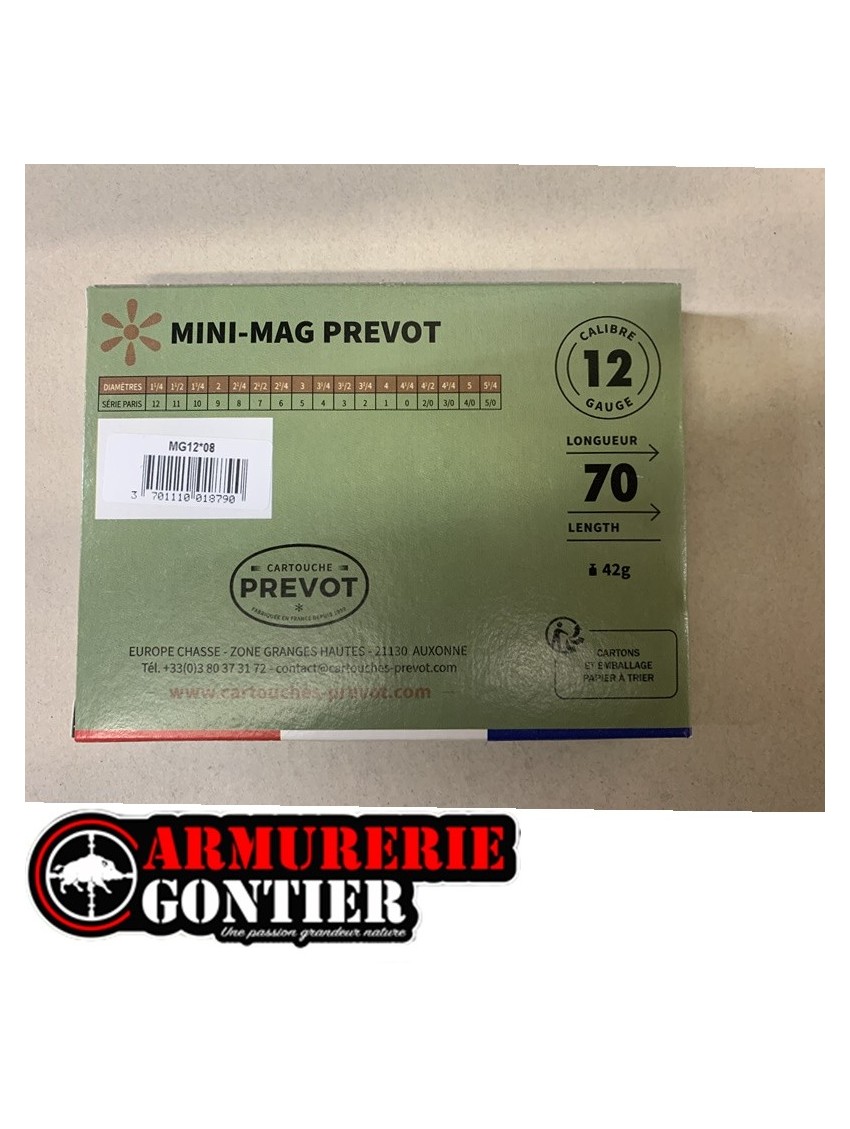 Les cartouches Prevot Mini-Mag 42 g Calibre 12/70 sont le fruit d'une innovation technique destinée aux amateurs de chasse exigeant le meilleur de leur équipement. Ces cartouches sont spécialement conçues pour offrir une performance exceptionnelle, grâce à une combinaison unique de puissance et de précision