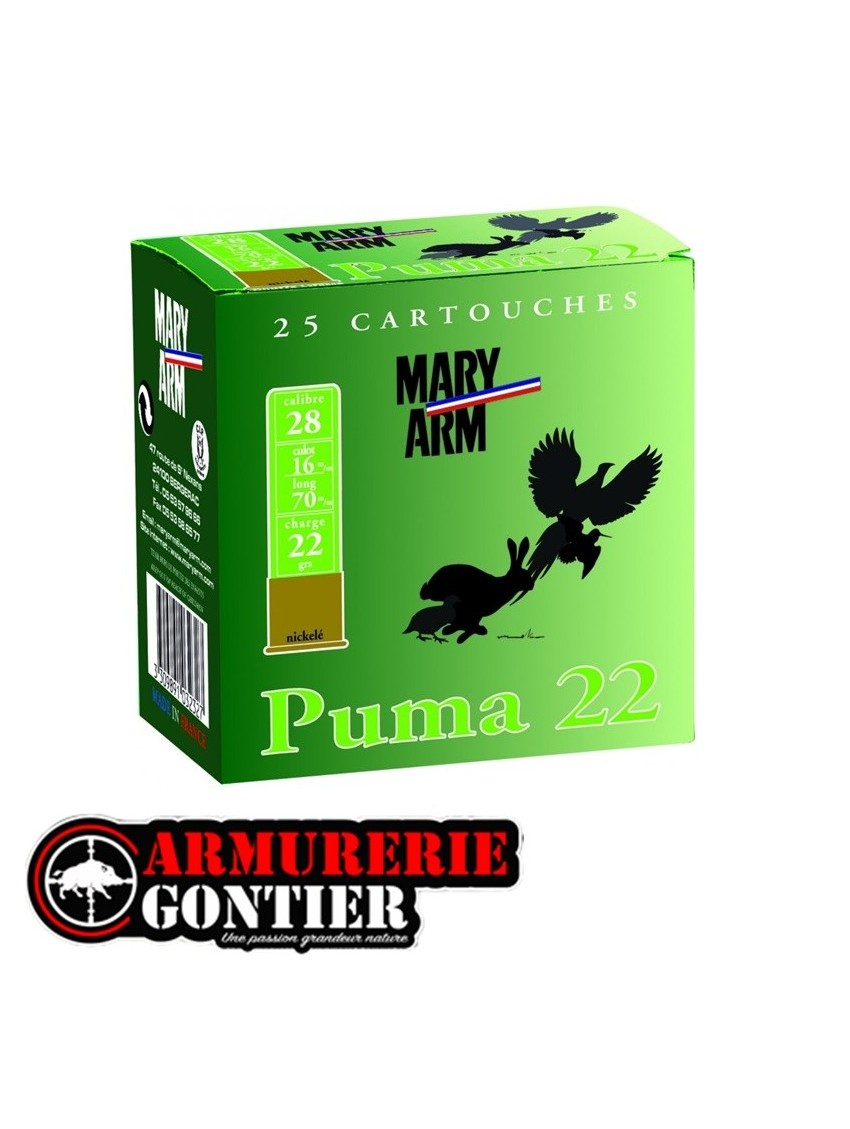 Cartouches MARY ARM PUMA 22 calibre 28/70 N°9 22gbourre à jupe