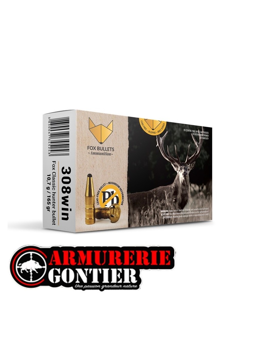 Il s'agit d’une munition « Fox Classic Hunter » au calibre .308, poids de balle de 10.7g (165 grains).