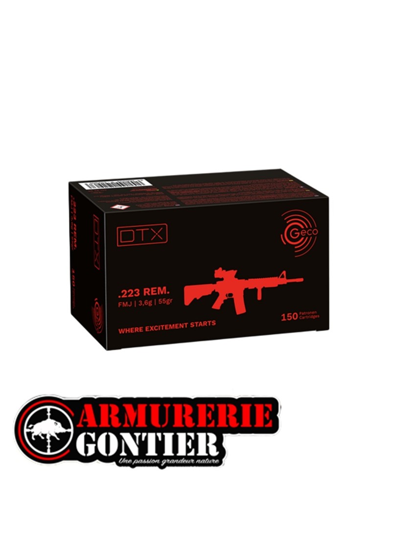 Produit : GECO DTX .223 Rem — FMJ (Full Metal Jacket).