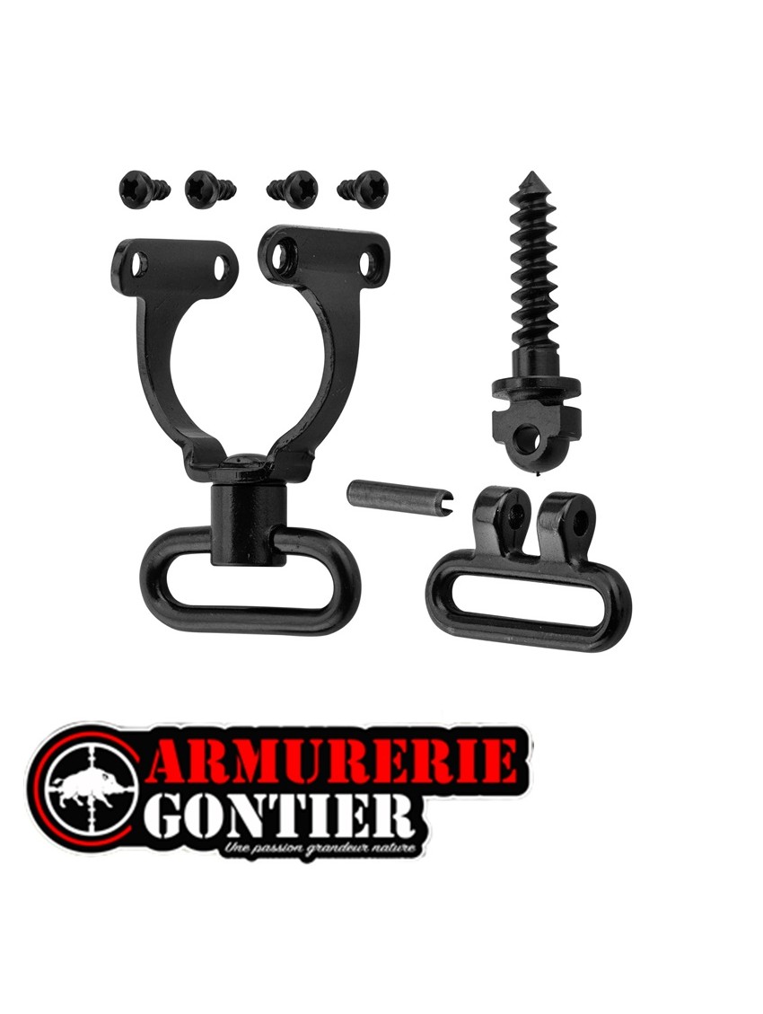 Fixation canon : collier métallique (avec vis de serrage) venant se placer autour du canon ou du tube magasin, muni d’un anneau pivotant.