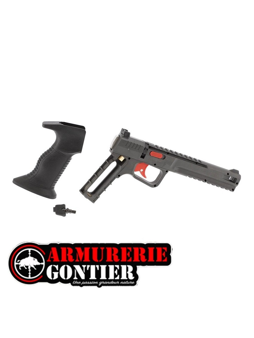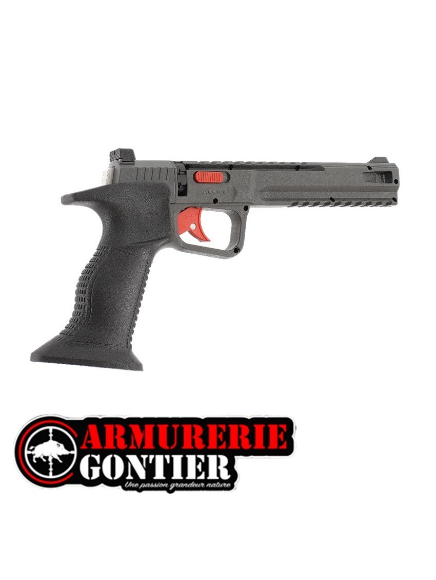 La conception ergonomique s'inspire des pistolets de compétition, avec une ligne de visée allongée, une détente rouge en double action et une surface de prise texturée. Deux rails Picatinny situés au-dessus et au-dessous du canon permettent le montage d'accessoires. Une sécurité manuelle empêche tout tir accidentel.