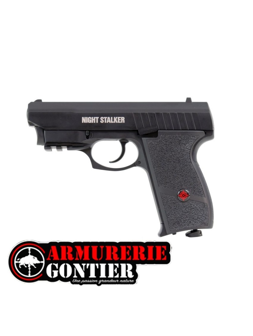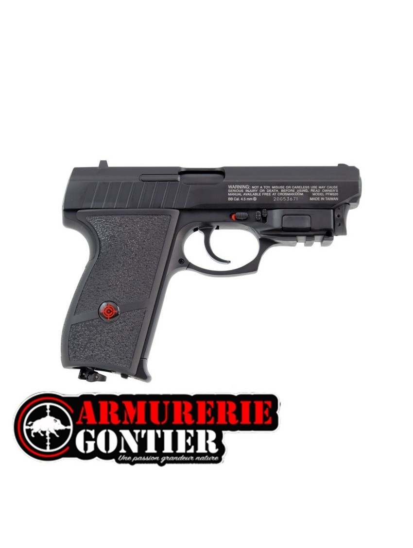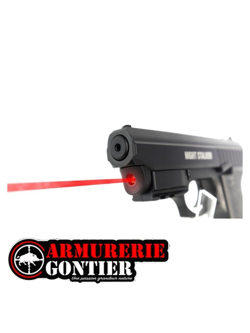 Pistolet C02, équipe d'origine d'un laser CLASS 2 a l'avant, il possède également un rail picatinny permettant la fixation d'une lampe.