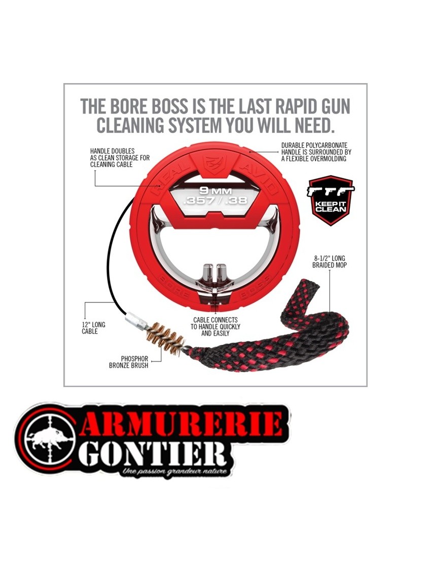 Cordon de nettoyage REAL AVID Bore Boss, conçu pour carabines en .357/.38/9MM — câble flexible pour un nettoyage rapide, sûr et sans risque d’emmêlement. Compatible avec brosses, mops et patchs standards.