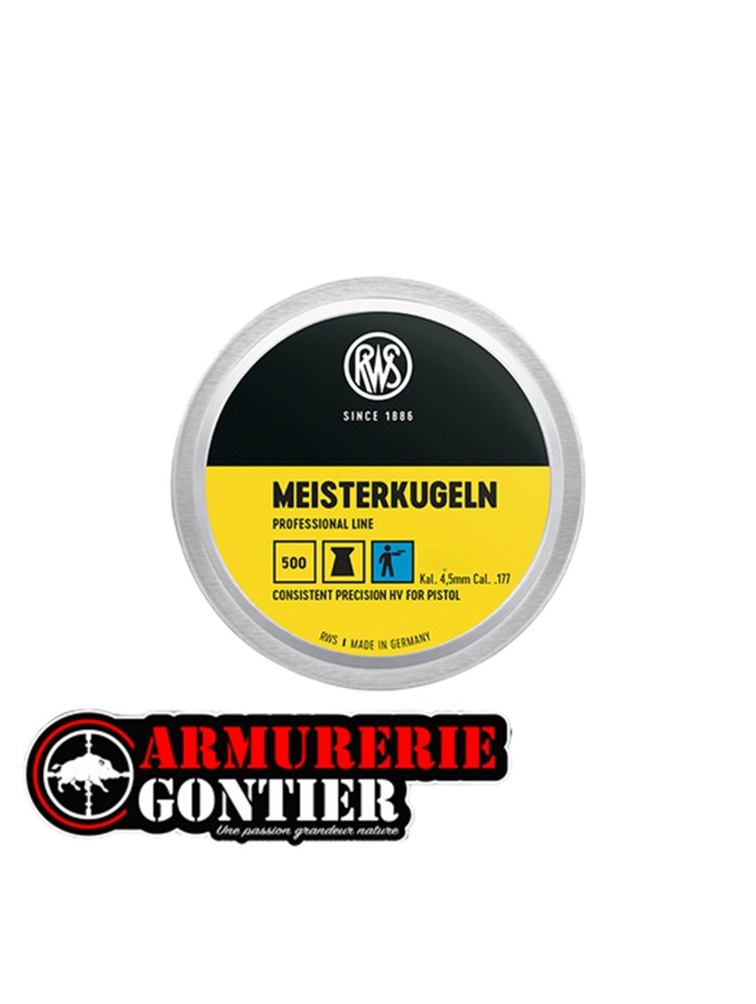 Les RWS Meisterkugeln Ø 4,50 mm – 0,53 g font partie des plombs de référence pour le tir de précision. Leur fabrication hautement contrôlée garantit une forme parfaitement régulière, un poids constant et une stabilité optimale en vol.