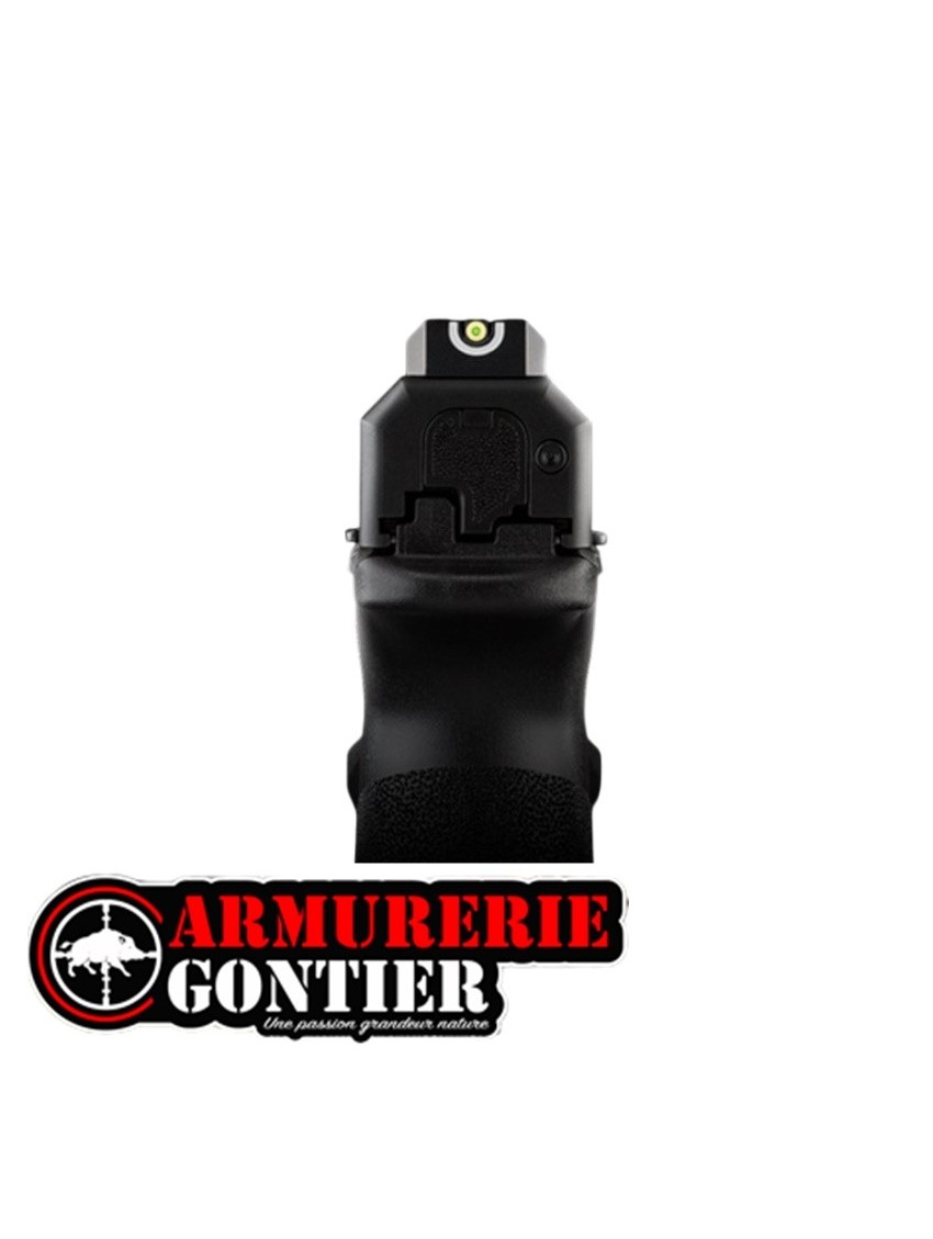 Grâce à sa plateforme Optics Ready, il est compatible avec un large choix d’optiques à point rouge. Les organes de visée U-Notch avec point jaune permettent une acquisition de cible rapide et intuitive.