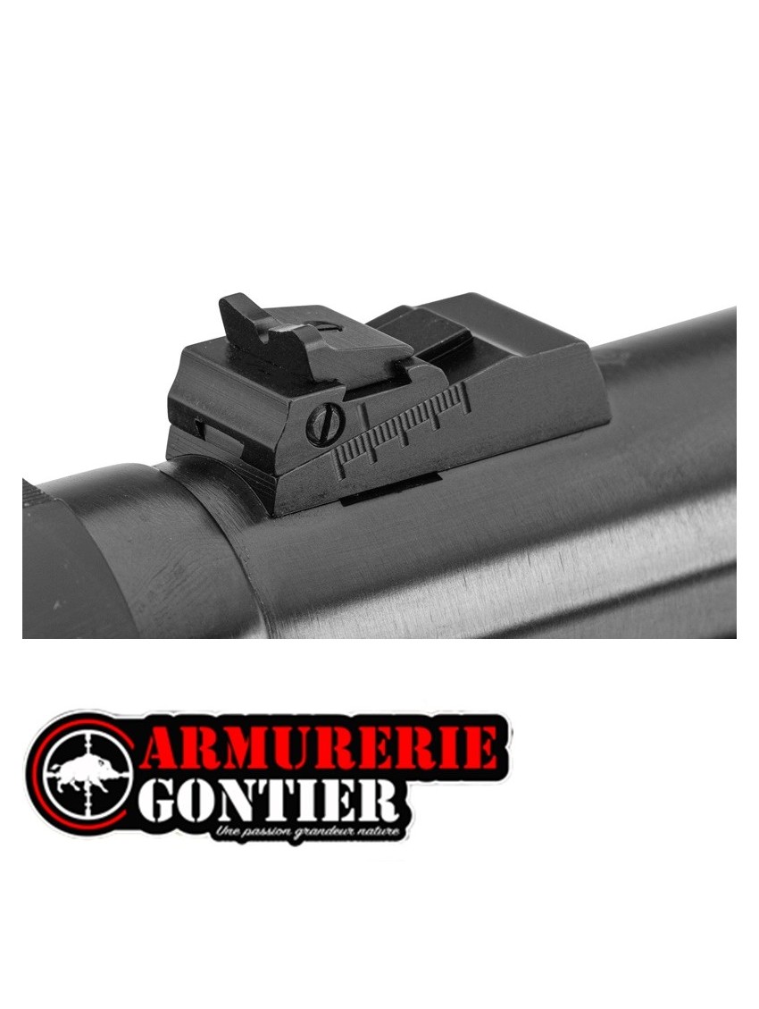 Équipé d’un canon rayé de 61 cm, conçu spécifiquement pour le tir à balle, ce Maverick 88 offre une précision accrue, notamment grâce à ses rayures hélicoïdales et à ses organes de visée réglables.