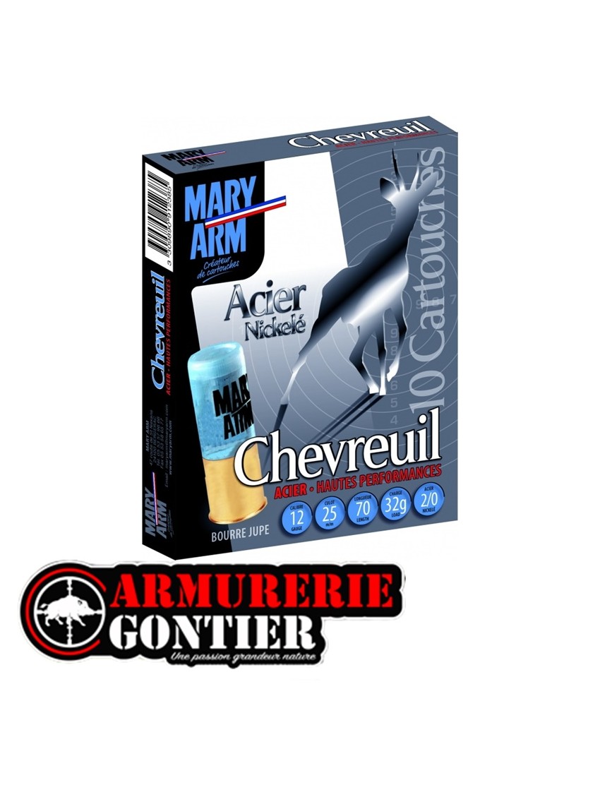 La MaryarmChevreuilAcier 12/70 32g Acier Nickelé est une cartouche haute performance spécialement conçue pour une utilisation en environnement humide.