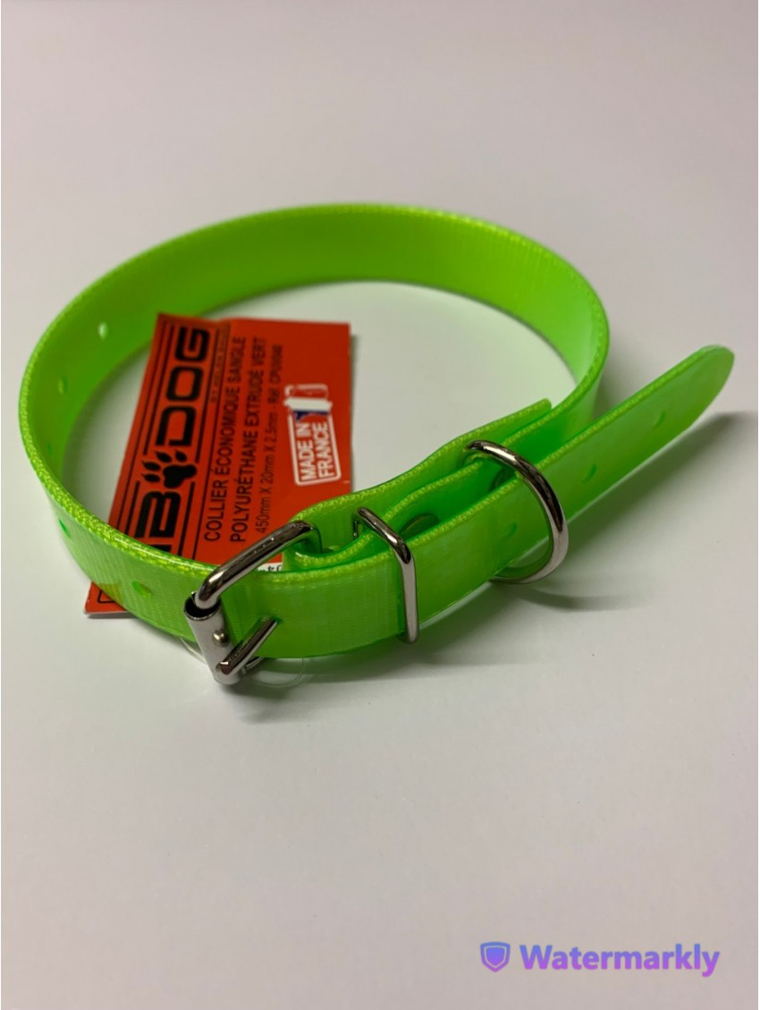 Les colliers Helen Baud DOG en ECO POLYURETHANE pour chiens de taille petite à moyenne se décline en plusieurs couleurs et grâce à leur 9 trous de réglage conviennent pour des tours de cou d’une longueur comprise entre 28 et 44 cm. Conçus en polyuréthane armé, ces colliers ne craignent ni l’eau ni le froid ni la chaleur. Ils sont très faciles à graver, se lavent très aisément et n’irritent pas la peau de vos chiens. Ils ne retiennent pas les odeurs, sont d’une grande solidité et d’un grand confort pour vos auxiliaires canins. Ils sont montés avec une boucle double, un dé soudé le tout maintenu par 2 rivets.