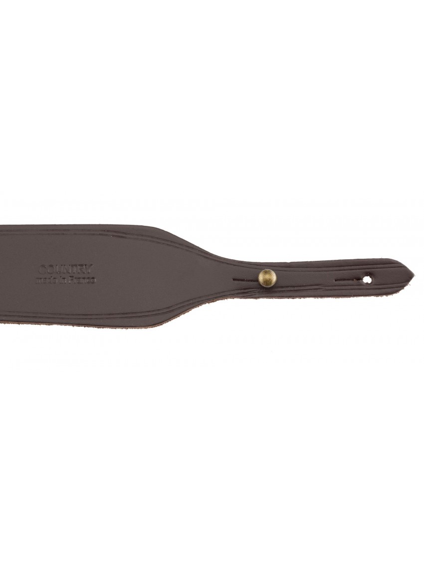 Bretelle en croûte de cuir - Croûte de cuir rectifiée : teinte dans la masse ; épaisseur 3 mm ; coloris brun foncé ; conforme à la norme Reach.